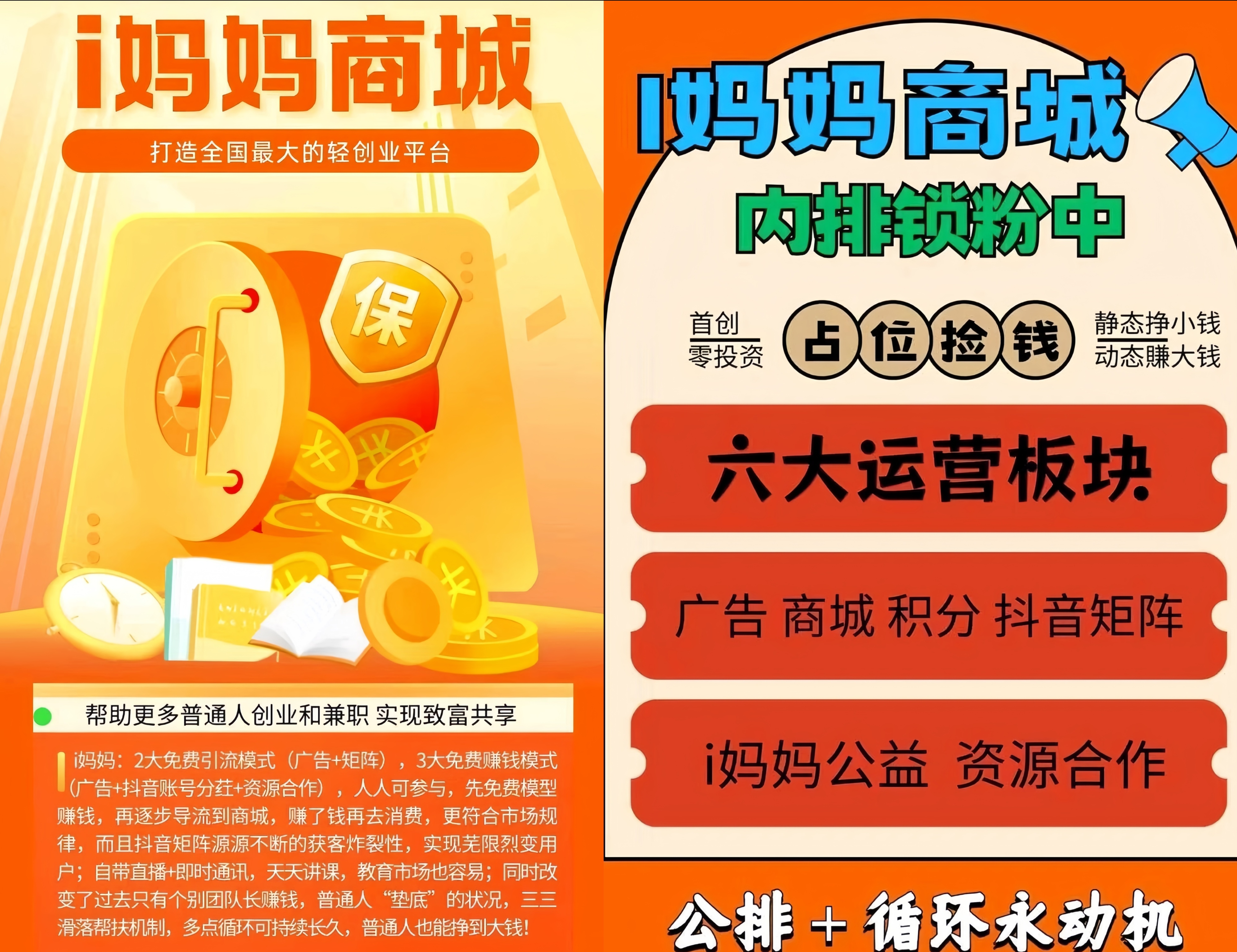 i妈妈商城:0投入赚米、全网公排滑落团队给你!